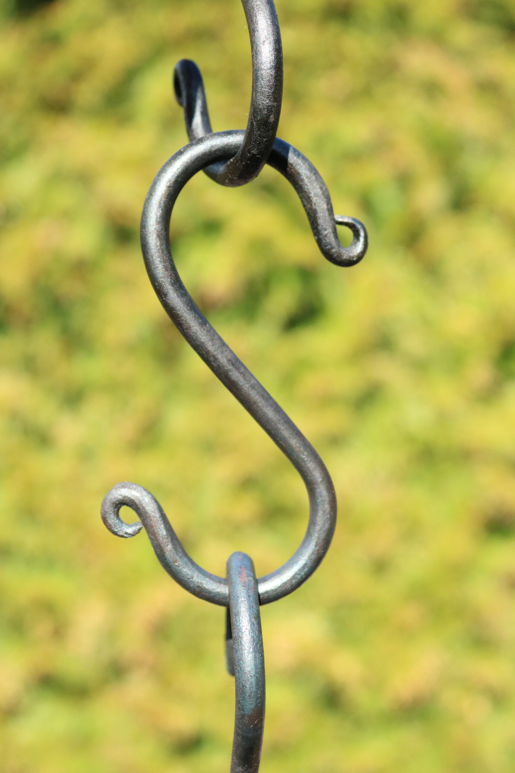 S-haak met krulversiering. De haken zijn behandeld met lijnolie waardoor ze beter beschermd zijn tegen roest.